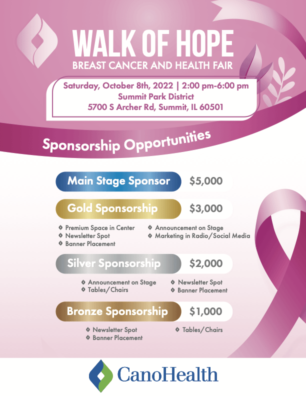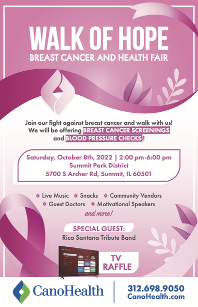 Join our fight against breast cancer and walk with us! We will be offering BREAST CANCER SCREENINGS and BLOOD PRESSURE CHECKS !